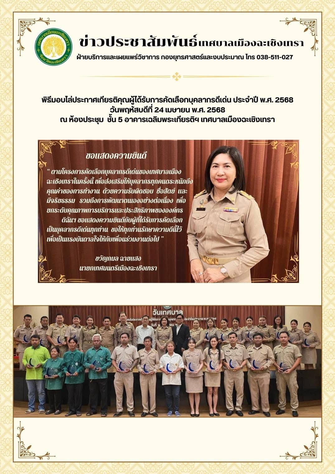 พิธีมอบโล่ประกาศเกียรติคุณผู้ได้รับการคัดเลือกบุคลากรดีเด่น ประจำปี พ.ศ.2568