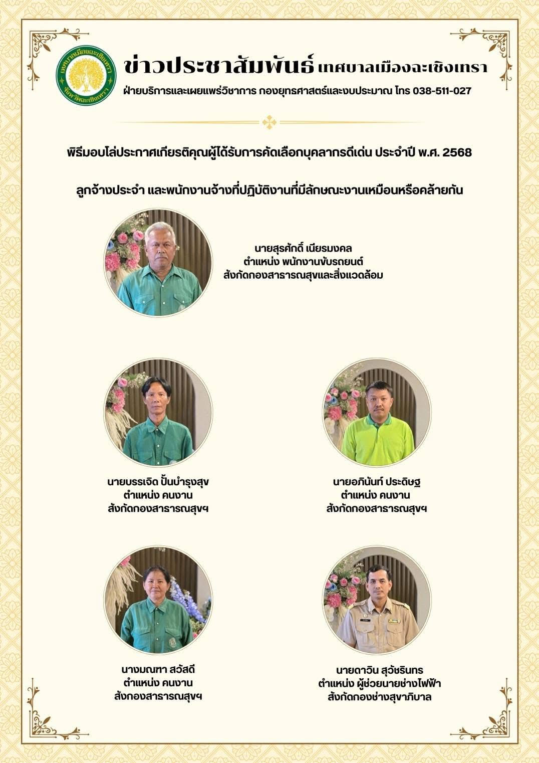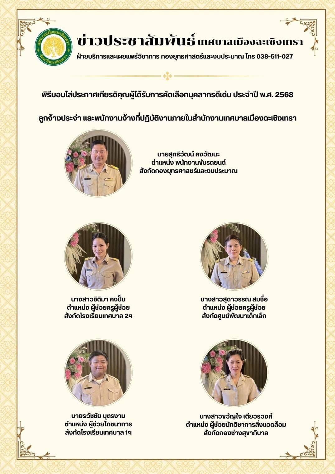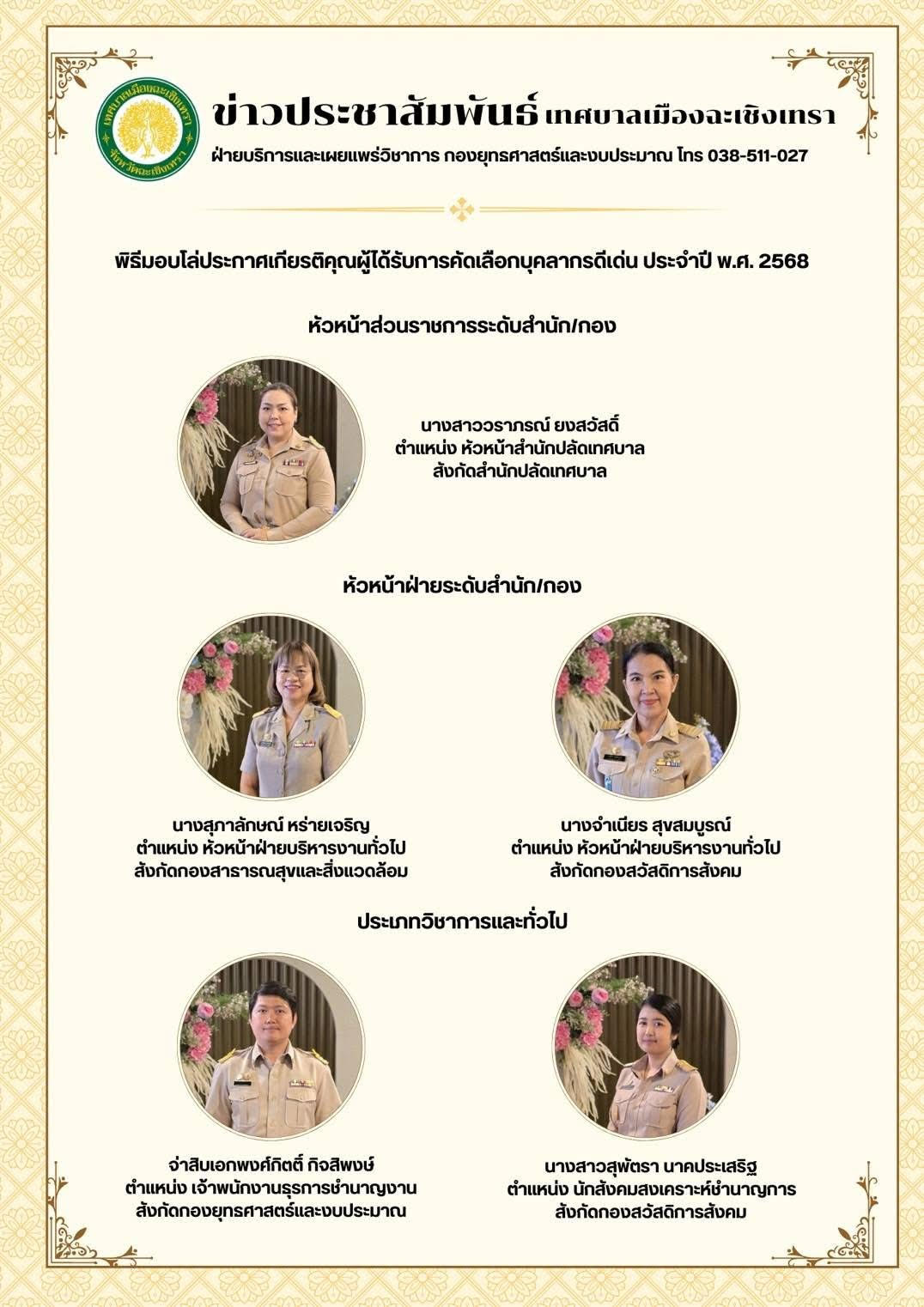พิธีมอบโล่ประกาศเกียรติคุณผู้ได้รับการคัดเลือกบุคลากรดีเด่น ประจำปี พ.ศ.2568